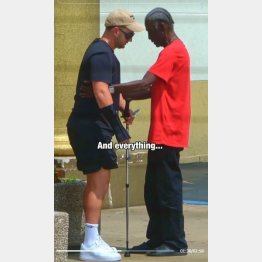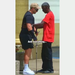 コトの起こりは今年8月、米デトロイトに住む男性カーティス・ディクソンさん(60=写真右)が、ある質屋の前の路上で「腕を骨折した目が不自由な男性(同左)」が座り込んで起き上がれずに苦労している場面に遭遇したこと。