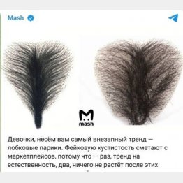 永久脱毛で局部をツルツルにしてしまったロシアの若い女性の間で「陰毛ウィッグ」の人気が沸騰しているそうだ。ここ数年、アンダーヘア復活のトレンドが強まっていたが、10月2日、インスタントメッセージアプリ「テレグラム」に、ロシアで人気のチャンネル「Mash」がその話題を投稿したところ急拡散、大バズりした(写真)。