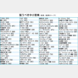 JPX日経中小型株指数の採用銘柄から、比較的指数へのウエート(指数への影響度)が高い100銘柄を〈別表〉にまとめた。上位には名の知れた企業が多いが、「あれ? 何の会社だっけ」というところもある。