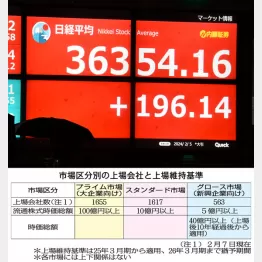 <上場10年経過後から時価総額40億円以上>という維持基準で、東証は、この基準をより厳しくする見通しだ。