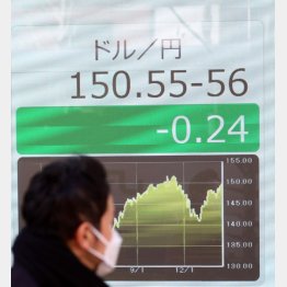 ドル円の為替相場が再び150円台に逆戻りだ。13日のニューヨーク市場で1ドル=150円台後半まで急落。昨年11月中旬以来、約3カ月ぶりの円安水準となった。