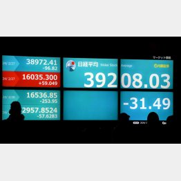 日経平均は「史上最高値圏」とはいえ、直近の為替相場(1ドル=150円)でドル換算すると、28日の終値の3万9208円03銭は、約261ドル。27日の米ニューヨーク(NY)市場のダウ平均株価は3万8972.41ドル。日米差は実に約150倍だ。