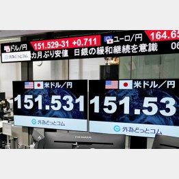 日銀が異次元の金融緩和政策を大転換して一夜明けた20日の外国為替市場で円相場が急落。昨年11月中旬以来、約4カ月ぶりに1ドル=151円後半まで売られた。対ユーロでも164円台後半となり、2008年8月以来、約15年半ぶりの安値を付けた。