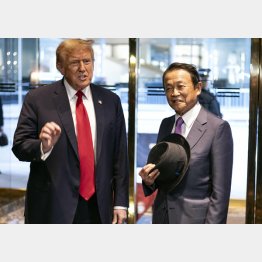 トランプタワーで麻生氏を出迎えたトランプ前大統領は、ご機嫌な様子で麻生氏を指さしながら「とても有名な男だ。そうでしょ?」と軽くジャブ。日本へのメッセージを記者から求められ「偉大な国で、とても良くやっている」とヨイショした。