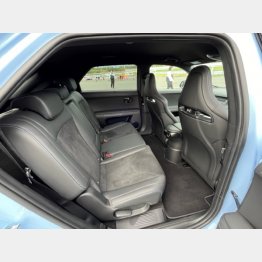 一番違うのはモーターパワーとバッテリー容量で、フロント237ps&リア413psの強力前後モーターと84kWhのリチウムイオンバッテリーを搭載。通常時は609ps、ブースト時は650psの驚愕パワーを発揮する。バッテリーEVなので車重は2.2トン台と重いが、330psのシビック タイプRの倍近い出力を発揮し、同等の速さを実現。時速0-100km加速は驚きの3.4秒だ。