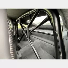 またボンネットや大型リアスポイラー、リクライニングのないフルバケットシートはカーボンブラスティックで作られ、軽量高剛性でガチにこのままレースに出られるクオリティー。ボディ前後パンパーやサイドシルには一部本格的なアルミ構造入りステンレス製プロテクションが取り付けられ、さらにオプションのラリースポーツパッケージを加えると、6点式シートベルトとリアシートを埋め尽くすスチール製ロールバーと消火器が付く。