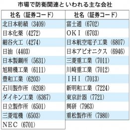 トランプ氏が大統領に就けば、日本はじめ各国に防衛力の強化を求めてくる可能性が高い。三菱重工やIHI、日立製作所、NECといった大手から、石川製作所(機雷・魚雷)や豊和工業(小銃・防衛火器)、細谷火工(照明弾)、重松製作所(防毒マスク)など防衛関連を扱う企業が関連銘柄。