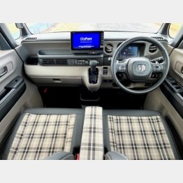 インテリアはワイルドSUV風というより、女性が好むアットホームなカフェのようなイメージで、シートは全面キュートなチェック柄。もちろん全面撥水加工がなされた特殊ファブリックで、なんとシート背面にも装着。