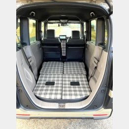 リアシートは倒すとラゲッジ含め全面撥水ファブリックで覆われ、さらにラゲッジ後端が標準より80mmかさ上げされ、全面ほぼフルフラットに。