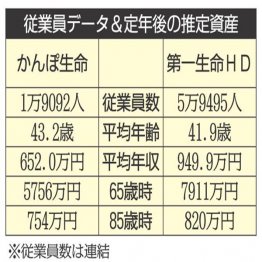 有価証券報告書によると、社員の平均給与はかんぽ生命が652万円、第一生命が949万9000円。役員報酬は1人あたり平均で2400万円と3250万円です。