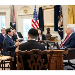 会談直前にトランプは自身のSNSで「軍事的支援の費用」を議題のひとつに挙げ、約50分に及んだ会談で従来からの「安保タダ乗り論」を展開したと報道されている。在日米軍の駐留経費の日本側負担(思いやり予算)を巡り、米国だけが対日防衛義務を負っているのは「不公平だ」と不満を表明したというのだ。