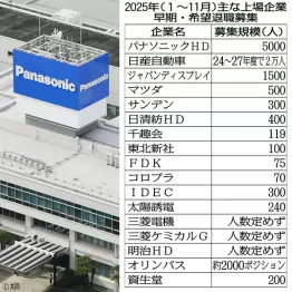 「パナの5000人が全体を押し上げています。最近、目立つのは、大手企業で中高年を対象とした募集が相次いでいることです。三菱電機は53歳以上、三菱ケミカルは50歳以上、明治HDも50歳以上が対象。人手不足で転職市場が活性化しているので、構造改革による年齢構成の適正化を進めやすいという背景がある。それを反映して、『セカンドキャリア支援』『ネクストステージ支援』といった名称で募集する企業が増えています」(東京商工リサーチ情報本部・本間浩介氏)