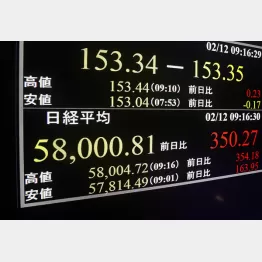 異様な高値に沸く株式市場では日経平均株価が2月12日、取引時間中の最高値を更新。史上初めて5万8000円を突破した。