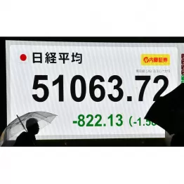 株価の下落が止まらない。年度末となった、3月31日の日経平均株価の終値は、前日比822円13銭安の5万1063円72銭だった。4営業日続落して終わった。