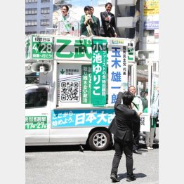 選挙妨害と受け止められかねない行為に出たのは、つばさの党だけじゃない。政治団体「日本保守党」新人の飯山陽陣営が24日朝、JR亀戸駅前であった乙武陣営の演説会に“乱入”。乙武陣営関係者が応援演説していた場所に選挙カーを横付けした飯山陣営は、大音量で「飯山陽」を連呼し続けたのだ。