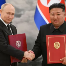 プーチン大統領と金正恩朝鮮労働党総書記は今年6月、事実上の軍事同盟「包括的戦略パートナーシップ条約」を締結。どちらかが武力攻撃を受けて戦争状態になった際に、もう一方の国が軍事援助を提供するとの内容だ。批准、発効はこれからだが、そこは独裁国家。国内手続きはナアナアのようだ。
