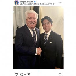 ある永田町関係者によると、進次郎氏がグラス大使と面会したのは23日。米国大使公邸で開かれたニューメキシコ州、ワイオミング州両知事と日系企業関係者との懇親会でのことだった。グラス大使はホストとして会合の仕切り役を務めていた。