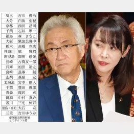 〈現時点における重点選挙区〉として、野党候補との差がプラス6ポイント台からマイナス7ポイント台の20選挙区(複数区含む)と候補者名を列挙(別表)。“難あり”議員が名を連ねているのだ。