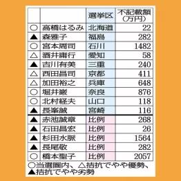 【別表】が裏金候補の当落予想だ。現状で当選確実とみられるのは、わずか5人。選挙区では自民党が2人擁立した北海道、「保守王国」の石川と山口、野党候補が乱立して漁夫の利の奈良の4人。比例では知名度抜群のJOC新会長だけだ。