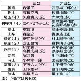 改選定数が2以上の複数区はこれまで自公の「指定席」だった。日本維新の会の本拠地である大阪こそ、早くから接戦が予想されたものの、それ以外は安泰のはずだった。しかし、埼玉、神奈川、愛知、京都、兵庫、福岡で最終議席争いだ。