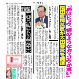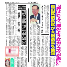 「男は黒ヒョウ。裸のようなカッコウでいる方が悪い」──と口にしていたのだ。懇談会に出席していた記者の多くは「これは問題発言だ」と思ったが、オフレコという記者クラブのルールがあり、どこも報じられなかった。それを本紙がすっぱ抜いた。記者クラブのあり方に一石を投じた記事だった。その後「週刊朝日」が、福田発言を報じている。