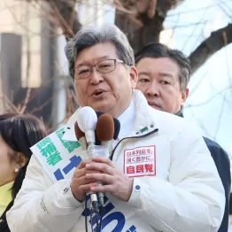 裏金事件で「党役職停止1年」の処分を受けた萩生田氏は前回、非公認となり、無所属で立候補した。次点と約7000票差と薄氷の勝利だったが、今回は自民党の公認を得ての出馬。選挙事務所には高市首相のほか、片山さつき財務相や林芳正総務相の為書きが貼られている。
