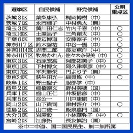 自民候補が対立候補とプラスマイナス5ポイント差以内の大接戦を演じているのは80選挙区。うち自民の元職と前職は計62人。閣僚経験者に絞っても、実に20人が大苦戦を強いられているのだ【別表】。