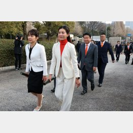 国会前の広場が新人議員や報道陣で賑わう中、午前9時に参政党“ご一行”が登場。13人の新人を含む15人の議員が、ぞろぞろと一斉に現れた。自民から“移籍”した豊田真由子議員と吉川里奈副代表を先頭に、整然と2列で並んで歩く姿は、相変わらず周囲から浮いていた。
