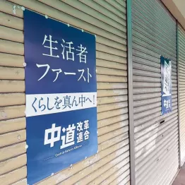 場所を移して、今度は板橋区内の某所を訪ねた。こちらは駅チカの商店街で活気に満ちている。中道のポスターの他、創価学会機関紙の「聖教新聞」が入った小型のカゴを出入り口にぶら下げる店舗もチラホラ。カゴには「ご自由にお取りください」と記された紙が掲げられている。熱心な支援者が多いようだ。