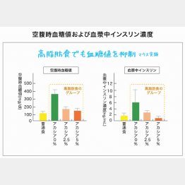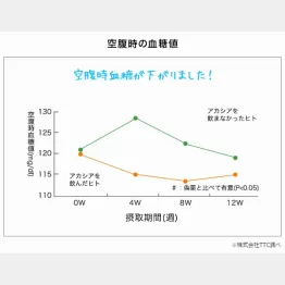大学との共同研究によると、マウスに高脂肪食とアカシアポリフェノールを同時摂取させて実験したところ、マウスの空腹時血糖は低く抑えられ、同時に血液中インスリン濃度も抑えられるという結果が出た。株式会社TTCが成人男女を対象に12週間続けて行ったヒト臨床実験では、アカシアポリフェノールの錠剤とプラセボ(偽薬)錠を摂取させたところ、アカシアポリフェノールを摂取した人の空腹時血糖が下がるという結果だった。