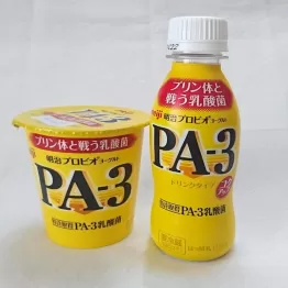 「明治プロビオヨーグルトPA-3」は「LG21」「R-1」に続く同社の新ブランドのヨーグルトで、「プリン体と戦う乳酸菌」を使用。2015年4月の発売以来、当初予想の2~3倍という好調な売れ行きだという。2016年3月のリニューアルでは、すっきりとした味わいに乳本来のコクと濃厚感を加えると、モニターアンケートでは約90%の人が「従来よりもおいしい」と回答。「とてもおいしい!」との回答が従来品より10%以上もアップした。同時にパッケージも一新され、“プリン体と戦う乳酸菌”のキャッチコピーもキャップ直下の目立つ位置にデザインされている。