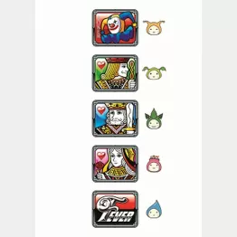 またクィーンといえばトランプ図柄。出玉とは関係ないがこの部分にもごらく版は工夫があり、図柄の中にダイナムのイメージキャラクター「モーリーズ」のシルエットが隠されている。ファン心理を突いた細やかな工夫が長く愛される機種であることを予感させる。