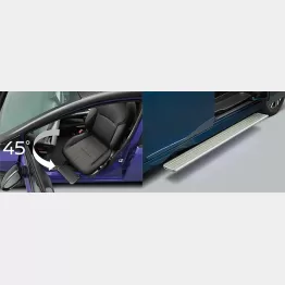 ◎回転シート……簡単な操作でシートがクルリと回転することで体をひねらずスムースに乗り降りをサポート。