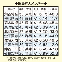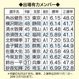 今泉友吾、角谷健吾、佐藤大佑の地元勢が強力だが、急成長見せる砂長知輝、A1級の横沢剛治、清水敦揮、北野輝季、金子賢志、鈴谷一平らも好勝負だ。