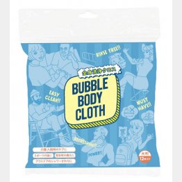 少しの水で泡立ち、汗拭きシート感覚で使えるボディーシャンプー入りの大判クロス。キャンプや登山、介護や防災に役立つという。