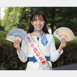 発売を前に先日、宝くじ「幸運の女神」齋藤聖奈さんが編集部に幸運を届けにやって来た。