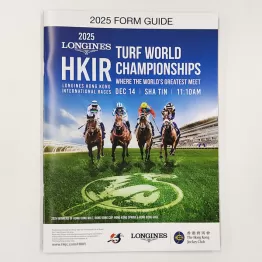 香港ジョッキークラブ提供の、日本でいうレーシングプログラムのような、国際競走出走各馬のこれまでの成績が紹介されているレースガイド(大)を3人にプレゼント。