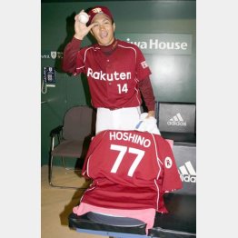 そんな指揮官不在となった28日の巨人戦、エースの則本が先発した。誰が置いたのか、ベンチで闘将のユニホームが見守る中、巨人打線をわずか3安打に抑える完封勝利。試合後は背番号「77」と共に笑顔を見せた。