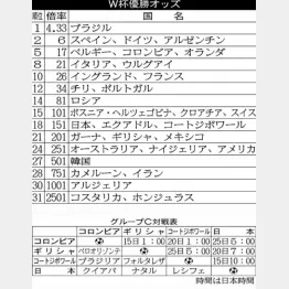 英国ブックメーカー「ウィリアムヒル」のW杯優勝オッズをチェックしてみると、20回連続20回目出場の王国ブラジルが4.33倍で単独トップ。2位にスペイン、ドイツ、アルゼンチンが6倍で並んでいる。この〈4強〉に水をあけられる格好でベルギー、コロンビア、オランダが5位タイ組を形成。優勝オッズは17倍となっている。