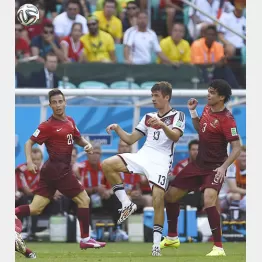 この得点と後半33分のチーム4点目は、まさに「ミュラー・ゴール」だった。右サイドを突破したFWシュルレが、低い弾道のシュート性のボールを入れた。GKルイパトリシオが機敏に動いて右手1本で好セーブ。しかし、はじいたボールの目の前にいたのはポルトガルDFではなく、やはりミュラーだった。すかさずゴールに叩き込み、ハットトリックの完成だ。
