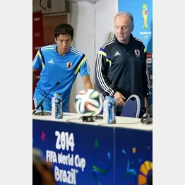 逆転負けした初戦コートジボワール戦では、いずれも左サイドを崩されて失点。FW香川真司、DF長友佑都の連係の悪さ、プレスの甘さ、運動量の少なさを突かれて守備が崩壊した。攻守に精彩を欠く香川のコンディション、起用法が注目される中、指揮官と一緒に会見に臨んだ主将のMF長谷部誠(30)には外国人記者から「香川にどんなプレーを期待する?」という質問が飛んだ。