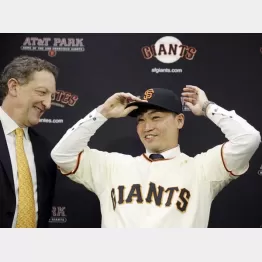 20日(日本時間21日)、本拠地AT&Tパークで入団会見。会見にはラリー・ベアー球団社長、ボビー・エバンス副GMが同席し、50人を超える報道陣が集まるなど、期待と注目度の高さをうかがわせた。