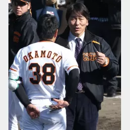 岡本のフリー打撃の時間に合わせ、一軍の原監督と日本代表の小久保監督らが二軍球場に勢ぞろい。打撃投手の球をいきなり空振りして赤っ恥をかいた。「緊張して思い切り空振りをしてしまいました」と苦笑いしたが、この日はそれ以上の人目にさらされた。