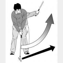 テークバックをしないでボールを飛ばすとフォローがみるみる大きくなる
