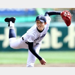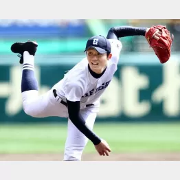 24日の松商学園戦に先発。初回にいきなり「150キロ」をマークし、スタンドをどよめかせた。先制した直後の二回に同点に追いつかれると、「5割くらい(の力)でコースに投げることを意識した。中盤からは変化球中心でいい感じだった」と即座に修正。四回以降はパーフェクトに抑え、2安打11奪三振1失点の快投だった。