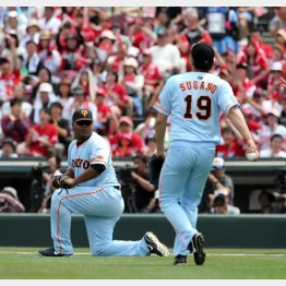 「5番・一塁」で先発出場した6日の試合。初回無死二塁で広島・菊池の送りバントが一塁側へ転がった。フランシスコはあらかじめ前進守備を敷いていたにもかかわらず、なぜか打球を追わず。菅野は三塁側にダッシュしていたためオールセーフとなった。これをきっかけに2点を先制されると、三回の無死二塁で打者・菊池という全く同じ場面でまたやった。