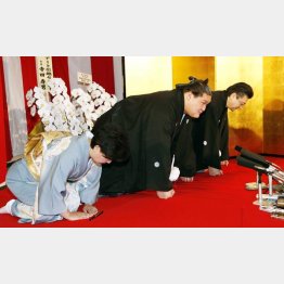 27日午前に行われた臨時理事会で、正式に大関昇進が決まった照ノ富士(23)。伊勢ケ浜部屋で伝達式の使者を迎え、7月の名古屋場所からは晴れて大関として土俵に上がることになる。