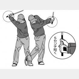 いくつか方法があるが、手軽で確実な方法がある。それはクラブを2インチ(約5センチ)ぐらい短く持ってプレーすることだ。例えば、ドライバーを打つならスプーン(3番ウッド)と同じ長さに、7番アイアンで打つ時はPWよりも少し短くなるぐらいにクラブを持って打つといい。
