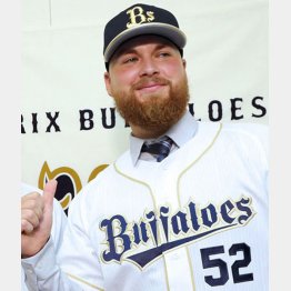 26日、オリックスの新助っ人3人が入団会見。抑え候補のコーディエ(29・前マーリンズ)、4番候補の外野手ボグセビック(31・前フィリーズ)、守備達者の内野手モレル(28・元パイレーツ)らが球団事務所で抱負を述べた。