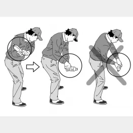 「シャフトの角度をキープするには、ダウンスイング後半でヘッドを前に振り出す動作が必要です。ヘッドを前に振り出すことで、シャフトの角度がキープできます」